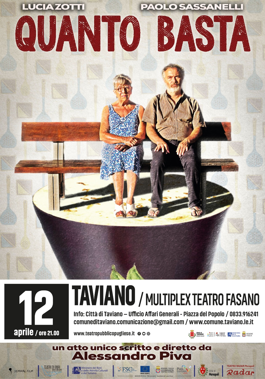 Mercoledì 12 APRILE – PAOLO SASSANELLI e LUCIA ZOTTI “Quanto Basta” di Alessandro Piva