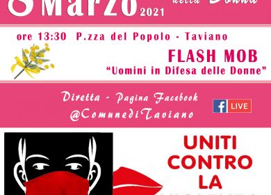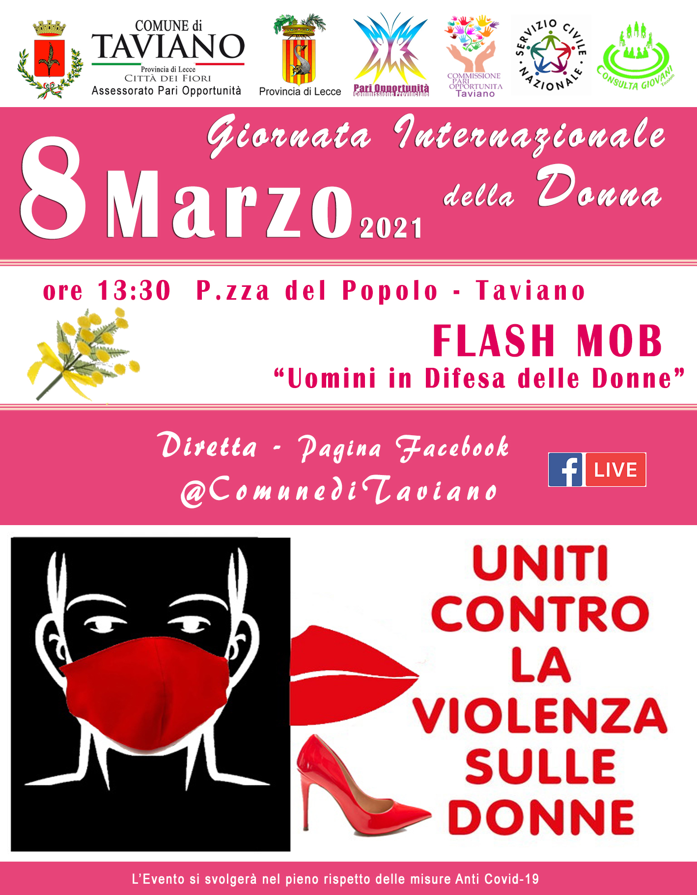 Lunedi 8 marzo, davanti alla sede del Municipio in P.zza del Popolo, si terrà il FLASH MOB “Uomini in Difesa delle Donne” che coinvolgerà i rappresentanti maschili del Consiglio Comunale, i dipendenti del Comune di Taviano, i giovani del Servizio Civile e della Consulta Giovanile, durante il quale sfileranno indossando una mascherina rossa e mostrando alcuni cartelli con messaggi forti e chiari.