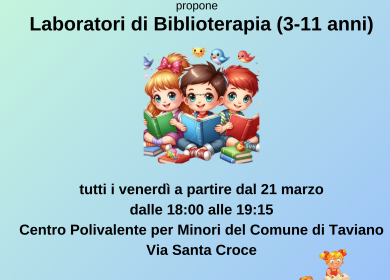 I laboratori si terranno presso il Centro Minori del Comune di Taviano in via Santa Croce a partire da Venerdì 21 Marzo 2025 dalle ore 18:00 alle ore 19:15.
