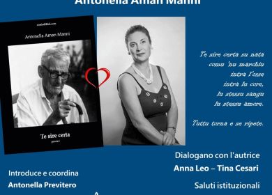 Nell'ambito del Progetto "A Libro Aperto", incontro con Antonella Aman Manni autrice del Libro "Te Sire Certa" , Sabato 18 Gennaio 2025 Palazzo Marchesale Piazza del Popolo.