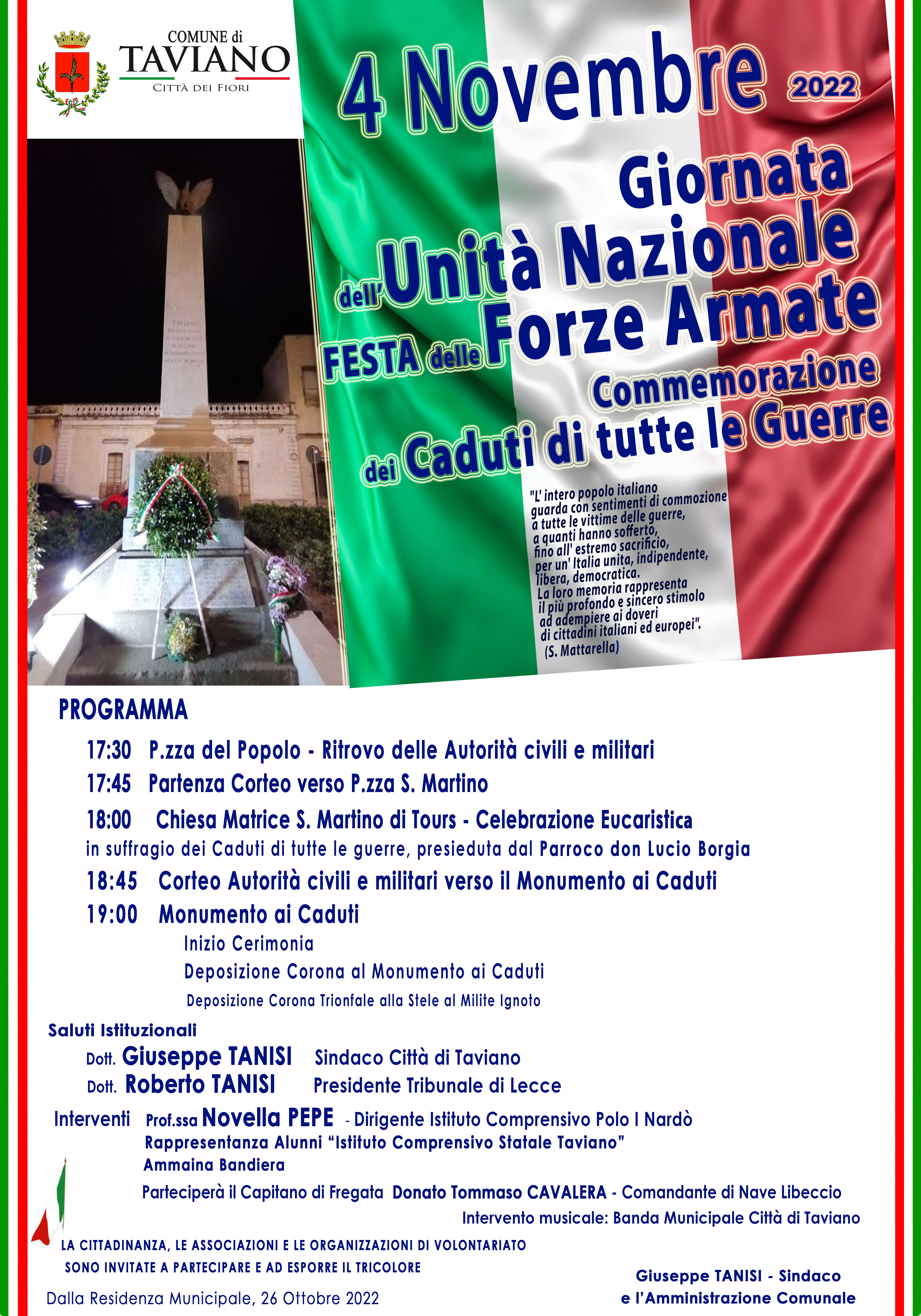 Giornata dell'Unità Nazionale - Festa delle Forze Armate - Commemorazione dei Caduti di tutte le Guerre