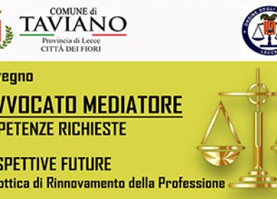 Il Comune di Taviano, Assessorato Affari Legali e Contenzioso, Organizza il Convegno accreditato dall'Ordine degli Avvocati di Lecce dal titolo: "L'avvocato Mediatore. Competenze Richieste e Prospettive Future in un'ottica di Rinnovamento della Professione".