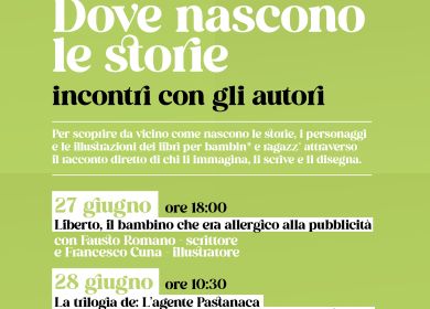 - Il 27 giugno alle 18:00 lo scrittore Fausto Romano e l’illustratore Francesco Cuna racconteranno “Liberto, il bambino che era allergico alla pubblicità”, una fiaba moderna per tutte le età, una metafora universale che parla al cuore del nostro presente, che ironizza sulla vacuità del consumismo e celebra la magia senza tempo dei libri e della conoscenza.