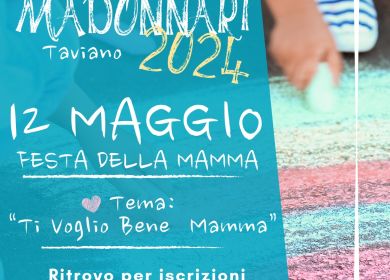 L’Amministrazione Comunale – Assessorato alle Politiche Sociali con la Commissione per le Pari Opportunità, organizzano in occasione della Festa della Mamma il Concorso Giovani Madonnari Taviano – disegno sull’asfalto dedicato al tema: “Ti Voglio Bene Mamma” da tenersi domenica 12 Maggio p.v. dalle ore 09.00 alle 13.00 sul tratto di strada compreso tra Corso Vittorio Emanuele II e Via Immacolata a Taviano.