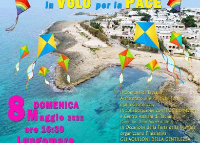 In occasione della Festa della Mamma, domenica 8 Maggio, il Comune di Taviano per impegno della Vice Sindaco e Assessorato alle Politiche Sociali e alla Gentilezza – Serena Stefanelli, in collaborazione con il Centro Minori e Centro Anziani di Taviano (Soc. Coop. Polvere di Stelle), organizzano l’iniziativa “GLI AQUILONI della GENTILEZZA in VOLO PER LA PACE".
