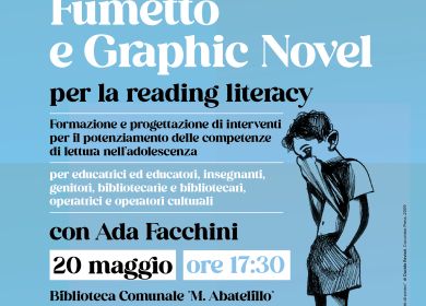 Formazione e progettazione di interventi per il potenziamento delle competenze di lettura nell'adolescenza, con Ada Facchini, che si terrà martedì 20 maggio alle h 17:30, presso la Biblioteca Comunale di Taviano.