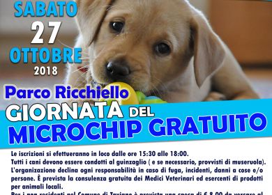 L'evento, realizzato in collaborazione con i medici veterinari dell'Asl di Lecce e le associazioni animaliste di Taviano, darà la possibilità di applica il microchip gratuitamente per i cani di proprietari residenti presso il comune di Taviano, mentre per i non residenti è previsto un contributo di 8 euro.
