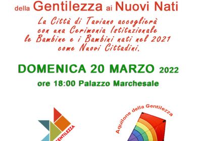 L’Amministrazione Comunale – Assessorato alla Gentilezza – organizza la Giornata Nazionale della Gentilezza per i Nuovi Nati, iniziativa promossa nell’ambito del progetto nazionale di Costruiamo Gentilezza (www.costruiamogentilezza.org), che ha come obiettivo quello di accrescere il benessere delle comunità mettendo al centro i bambini.