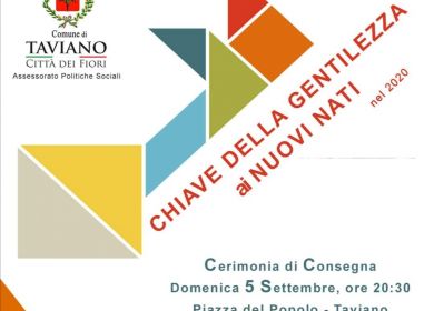 L’Amministrazione di Taviano ha aderito all’iniziativa nazionale promossa dal progetto Costruiamo Gentilezza (www.costruiamogentilezza.org) che ha individuato il 21 Marzo 2021 primo giorno di primavera come la GIORNATA NAZIONALE DELLA GENTILEZZA ai NUOVI NATI, con cui si accolgono istituzionalmente i Bambini nati nel 2020, come segno di Vita e di Rinascita in un periodo così complesso e difficile come quello nel quale stiamo vivendo.