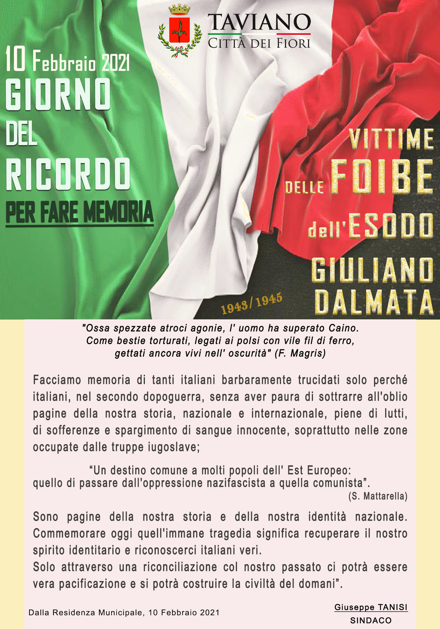 GIORNO DEL RICORDO - Vittime delle Foibe e dell'Esodo Giuliano Dalmata