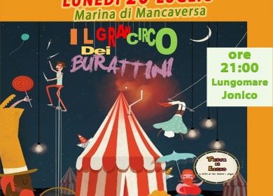 Primo appuntamento della Rassegna SERE D'ESTATE DEI BAMBINI 2020 con "IL GRAN CIRCO DEI BURATTINI" uno Spettacolo con burattini, marionette e pupazzi , a cura della Compagnia Teste di Legno.