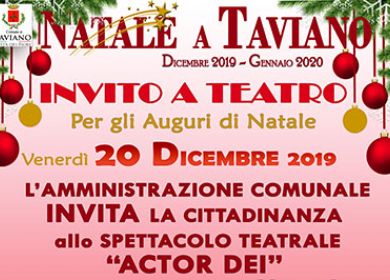 Il Sindaco, Giuseppe Tanisi, e l’Amministrazione Comunale INVITANO LA CITTADINANZA, Venerdì 20 Dicembre 2019, a TEATRO per lo scambio degli Auguri di Natale.