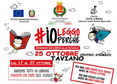 Il Comune di Taviano anche quest'anno,in collaborazione con l' Istituto Comprensivo Taviano e la Libreria Antica Roma, partecipa all'iniziativa nazionale #IOLEGGOPERCHE' per la promozione del LIBRO e della LETTURA.
