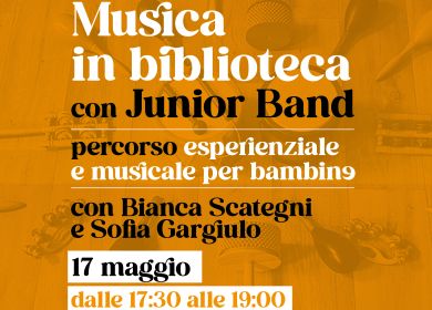 Musica in biblioteca con Junior Band, con Bianca Scategni e Sofia Gargiulo, che si svolgerà il 17 maggio alle h 17:30 presso la Biblioteca Comunale di Taviano.