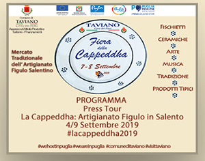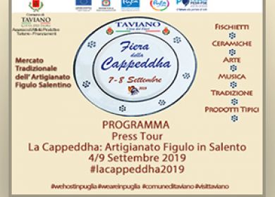 Evento centrale del Press Tour sarà la fiera-mercato della Cappeddha, che ogni anno viene organizzata e realizzata a Taviano fra il 7 e l’8 settembre, con l’esposizione e la vendita di fischietti in terracotta e “coppi” (ossia vasi, pignate, tegami, brocche, fiaschi) ed altri oggetti tipici della tradizione contadina e domestica salentina, creati con la terracotta dai maestri figuli locali. La fiera ha origini antichissime e prende il nome dalla piccola Cappella (Cappeddha) della “Madonna delle Grazie”, ormai sconsacrata, nelle cui prossimità si svolge il mercato.