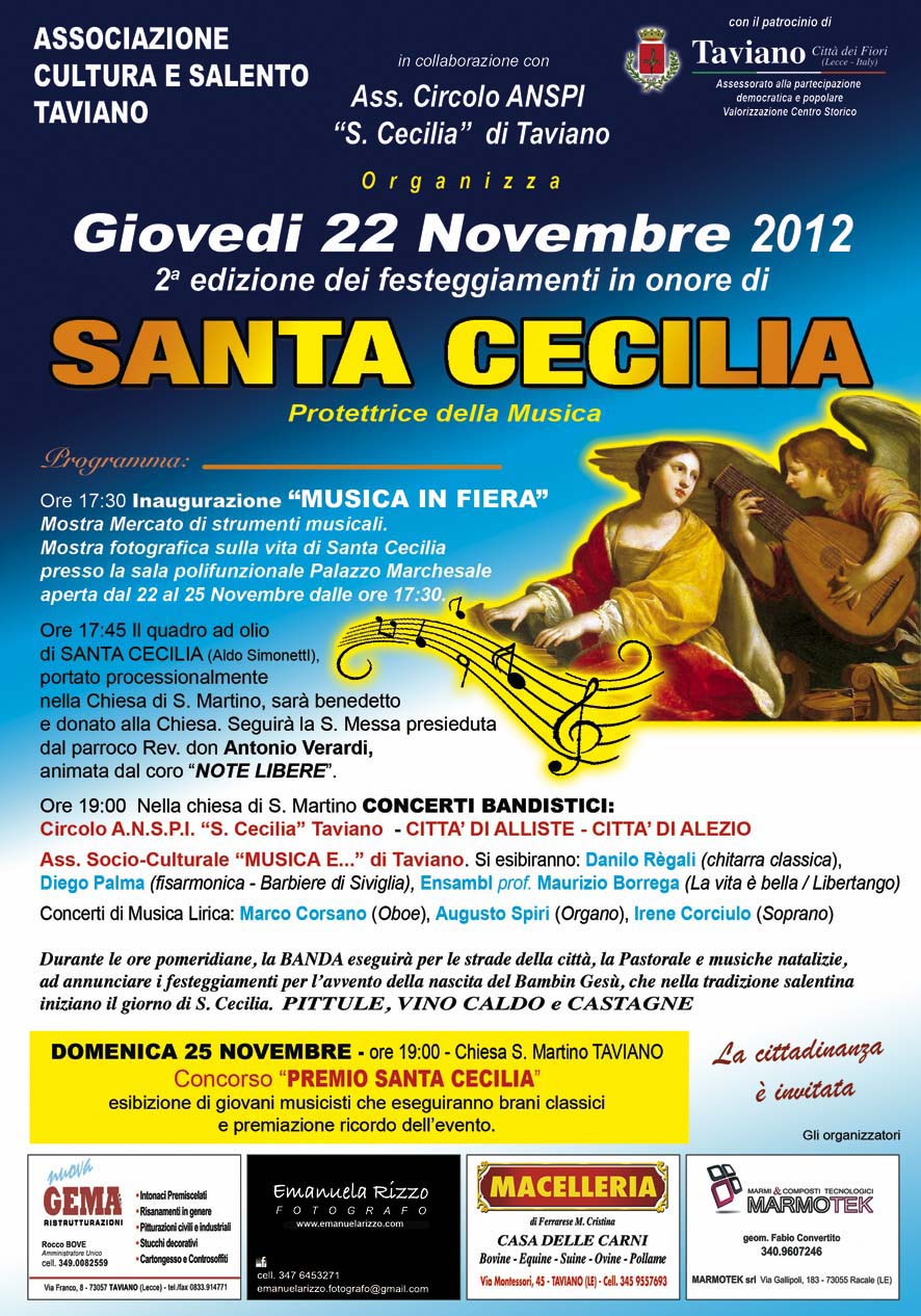 l'Associazione Cultura e Salento in collaborazione con il Circolo ANSPI S. Cecilia di Taviano e il Comune di Taviano organizza la seconda edizione dei festeggiamenti in onore di S. Cecilia...