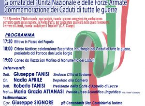 4 NOVEMBRE 2018 - Giornata dell'Unità Nazionale e delle Forze Armate, Commemorazione dei Caduti di tutte le guerre