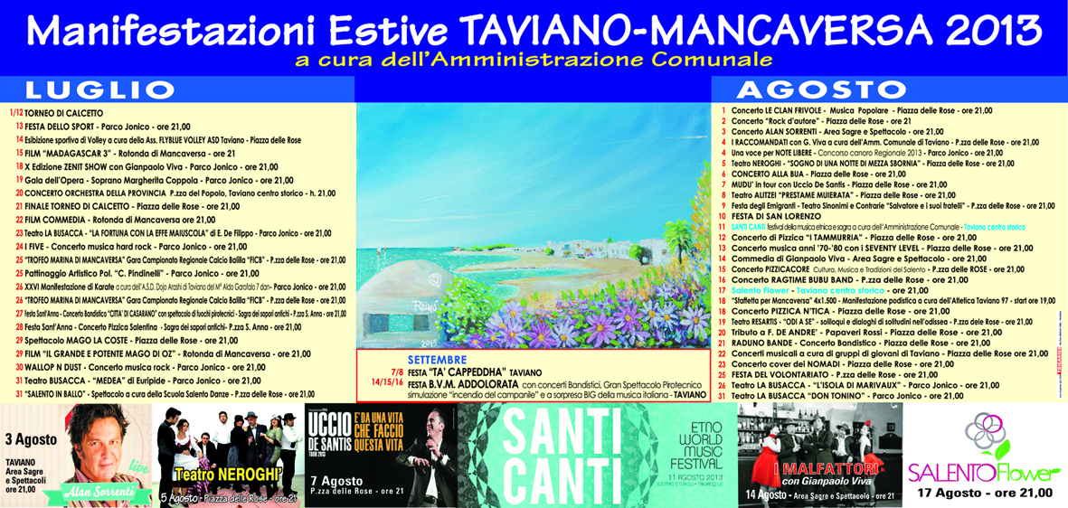 delle MANIFESTAZIONI ESTIVE TAVIANO MANCAVERSA 2013.
