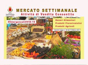 si stabilisce che con decorrenza dalla data del presente provvedimento e fino al 6 aprile 2021 è consentita nel mercato settimanale del venerdì nell’area mercatale del Comune di Taviano,