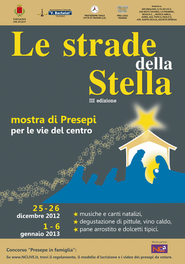 Mostra di Presepi per le vie del centro (terza edizione). Per il Concorso "Presepi in Famiglia" sul sito internet: www.nclive.it trovi, il regolamento, il modulo d'iscrizione e il video dei...