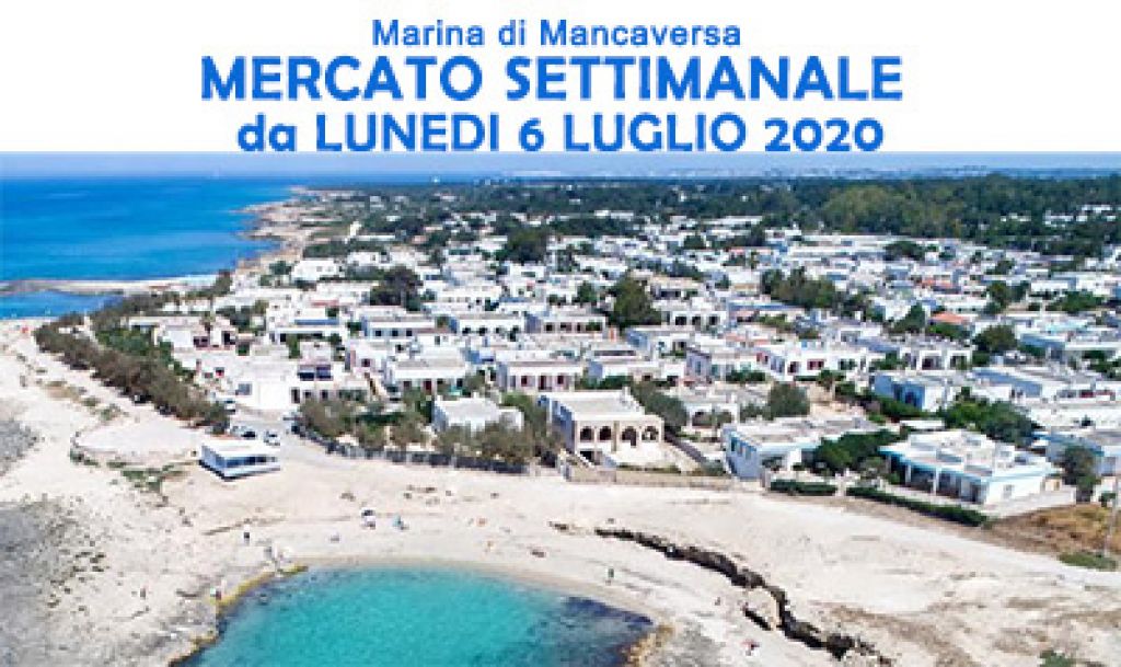 Con Ordinanza Sindacale, n.7 del 24 giugno 2020, il Sindaco ha autorizzato la ripresa delle attività di vendita di tutti i settori merceologici del Mercato settimanale del Lunedi presso P.zza delle Rose nella Marina di Mancaversa, a decorrere dal 06 luglio 2020,