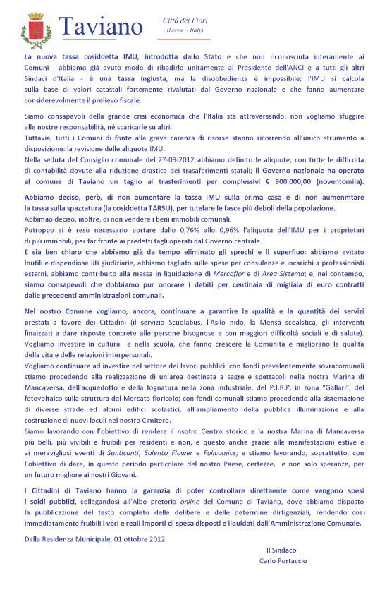 collegandosi all’Albo pretorio online del Comune di Taviano, dove abbiamo disposto