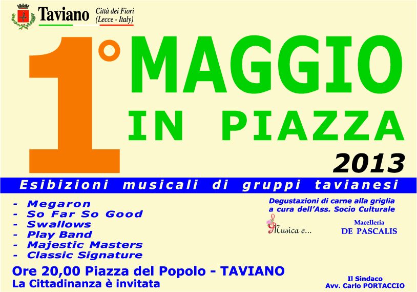 L'Amministrazione Comunale, in occasione della Festa del 1° Maggio, organizza in Piazza del Popolo (con inizio alle ore 20:00) una serata di intrattenimento, con esibizioni musicali di gruppi...
