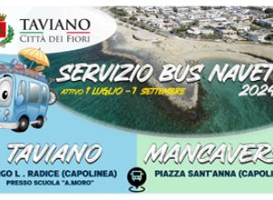 Servizio Bus Navetta - Taviano/Mancaversa. Attivo dal 1 LUGLIO al 7 SETTEMBRE 2024.