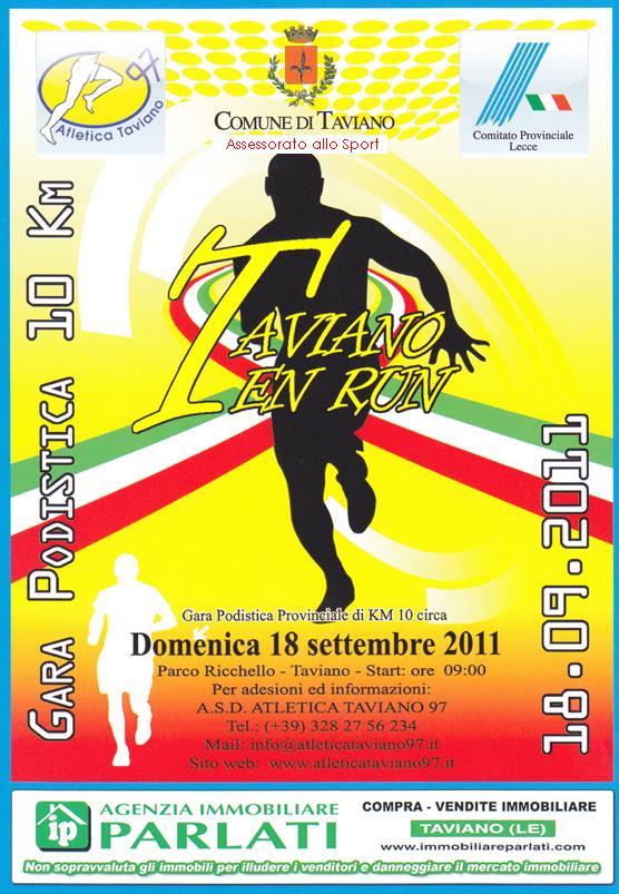 Domenica 18 settembre 2011, con partenza alle ore 9.00 dal parco Ricchello, prenderà il via la prima edizione della "TAVIANO TEN RUN" - Gara Podistica Provinciale di Km 10 (circa)- organizzata...
