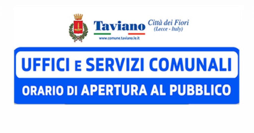 Nuovi Orari di Apertura al Pubblico degli Uffici Comunali in vigore dal 1 Gennaio 2022.